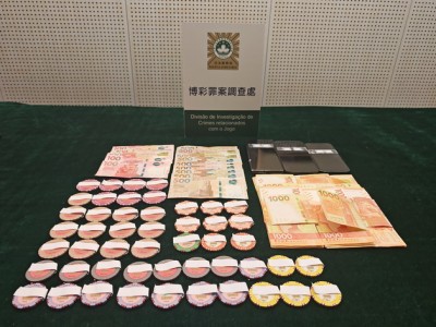 【本報消息】一名男賭客與高利貸配碼放貸賭博途中,發現對方盜取籌碼而引發爭執驚動保安介入。司警接報到場拘捕兩名內地高利貸及扣押逾100萬港元現金及籌碼,現正追緝一名在逃同黨下落。 涉案被捕的兩名內地高利貸均無業,包括29歲姓余和40歲姓陶,事後已被司警以涉經營為賭博的不法借貸及盜竊等罪名送交檢察院處理。案中非本澳男青年於本月10日下午三時在路氹某賭場耍樂期間,被一名在逃高利貸搭訕遊說其...