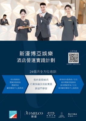 【本報消息】為有興趣於酒店業發展的本澳居民,提供全方位的培訓及事業發展機會,勞工事務局和新濠博亞娛樂合作推出「新濠博亞娛樂酒店營運實踐計劃」,以先入職、後培訓方式為本澳居民提供事業發展機會,計劃即日起接受申請。計劃提供合共62個職位空缺,包括15個前台服務員職位空缺、兩個禮賓部服務員職位空缺、五個顧客聯絡中心服務員職位空缺及40個禮賓管家職位空缺。獲計劃錄取的參加者,新濠將安排24個月的專業培訓及...