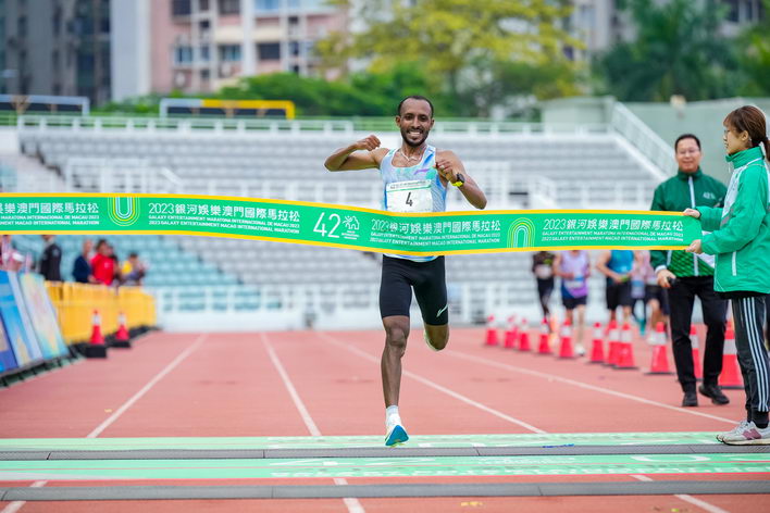 【本報消息】由體育局、銀河娛樂集團及澳門田徑總會主辦的「2023銀河娛樂澳門國際馬拉松」周日清晨於奧林匹克體育中心運動場舉行,其中馬拉松男、女子全場組別最終分別由埃塞俄比亞選手狄比尼及安比奪冠,而王坤與趙彤彤則分別贏得馬拉松澳門運動員男、女子組的桂冠。