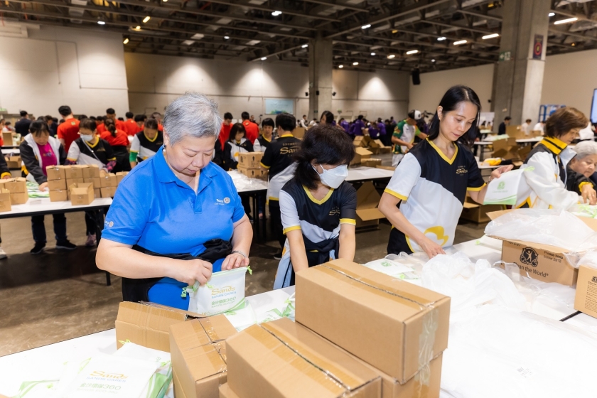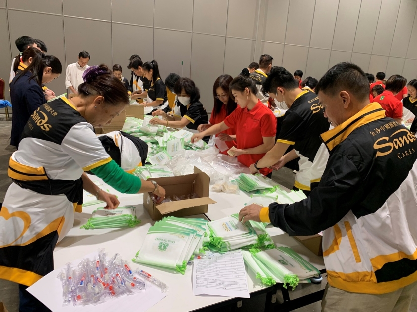 為響應活動,金沙中國團隊成員及金沙中國關懷大使、澳門扶輪社會員合共約200名本澳義工,齊集於金光會展攜手製作逾27,000個個人衛生用品福袋,之後將經由Children International送往菲律賓為有需要家庭解困。