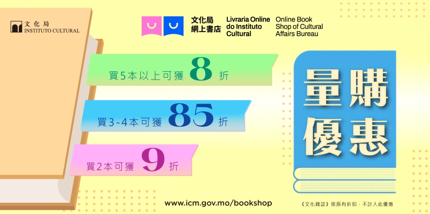 除「量購優惠」外,網上書店亦設有《文化雜誌》特別折扣優惠,歡迎海內外讀者入內選購,詳情可瀏覽文化局網上書店網站。