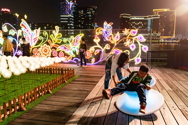 【本報消息】由去年12月2日至今年2月25日期間舉行的「2023幻彩耀濠江」,以「璀璨遊樂場」為主題覆蓋澳門半島、氹仔及路環七個區份合共34個地點,送上多個燈光裝置、互動裝置及光雕表演,帶領公眾遊歷繽紛多彩的「遊樂場」。