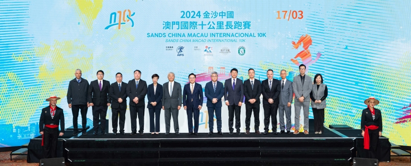 賽事組委會18日舉行新聞發佈會公佈賽事詳情及報名安排。出席嘉賓包括體育局局長潘永權、金沙中國總裁兼執行董事王英偉、澳門田徑總會副理事長陳步倩、體育局副局長林蓮嬌及體育委員會委員等。