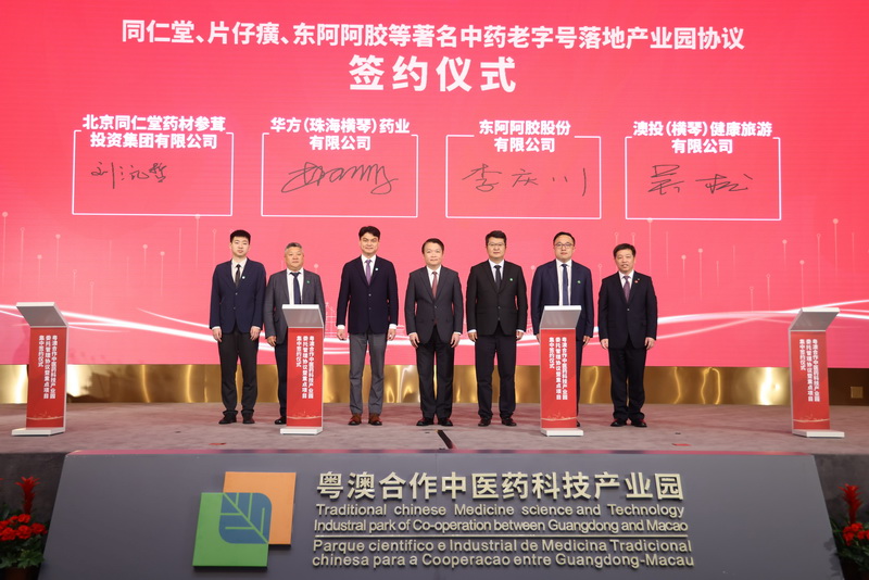 同場也舉行了17個重點項目集中簽約,當中包括聚焦中醫藥研發製造,引進中醫藥廣東省實驗室、珠海澳大科技研究院轉化醫學研發中心擴建項目、裕新健康項目;聚焦高端醫療健康服務,引進原妙綜合醫院、龜多多文化體驗綜合館、優眠醫學中心、複美精準健康管理中心;聚焦道地藥材檢測及交易,聯合中國中醫科學院中藥資源中心共同建設道地藥材檢測與全球天然藥物交易中心;聚焦保險客戶導流,引進太平人壽橫琴全球匯客廳及體驗中心;聚焦中醫藥文化傳承,引進同仁堂、片仔癀、東阿阿膠等老字號品牌;聚焦中醫藥人才培育,引進北京中醫藥大學繼續教育基地;聚焦中醫藥學術交流與合作,推動中華中醫藥學會、世界中醫藥學會聯合會、世界針灸學會聯合會橫琴國際會議中心(會議基地)在產業園掛牌;聚焦社會資本引進,中國中醫科學院、太平資本保險資產管理有限公司以及中銀國際證券股份有限公司就共同組建中醫藥「一帶一路」發展基金簽署戰略合作協議。