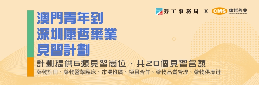 【本報消息】為積極配合特區政府推動「1+4」經濟適度多元發展策略,促進新興產業人才培育,勞工局支持澳門青年學習內地企業的先進經驗和科技知識,拓展就業發展空間,分別與金蝶及康哲藥業合作,推出「澳門青年到深圳金蝶軟件見習計劃」及「澳門青年到深圳康哲藥業見習計劃」,申請期至3月8日,歡迎有興趣青年報名參加。