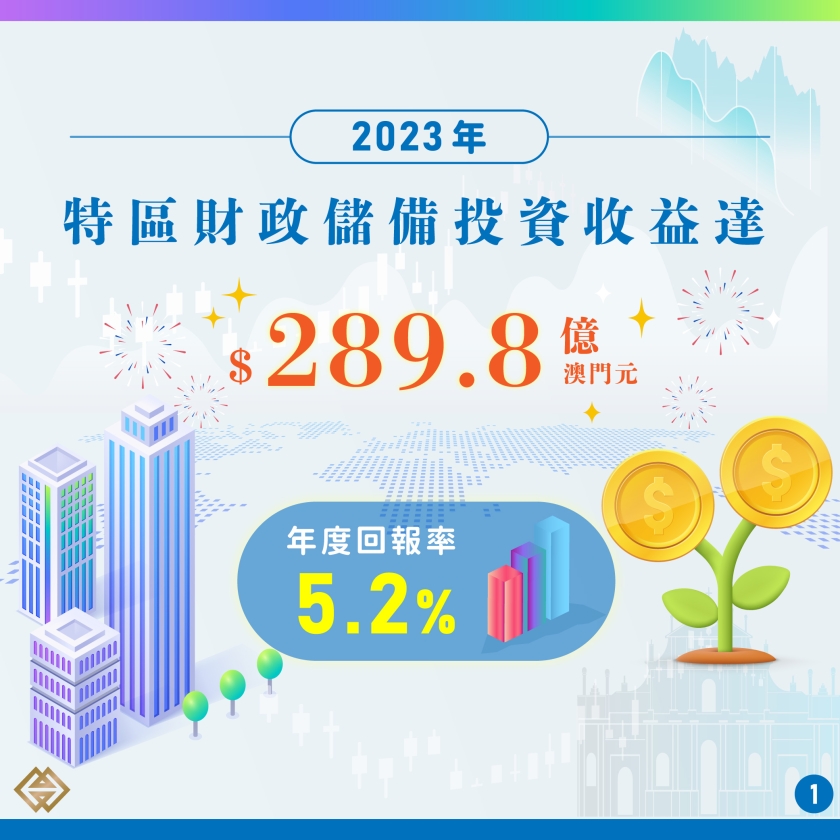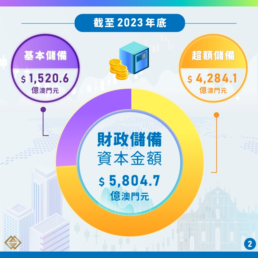 【本報消息】金融管理局公佈,2023年澳門特區財政儲備在審慎而靈活的投資管理下,全年錄得289.8億澳門元的投資收益,年度回報率為5.2%。截至去年底,財政儲備的資本金額為5,804.7億;其中,基本儲備及超額儲備分別為1,520.6億及4,284.1億。