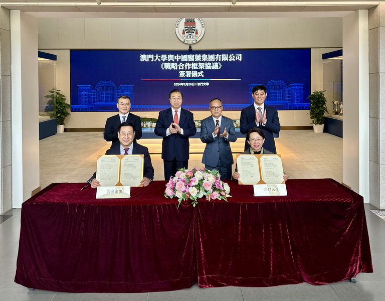 【本報消息】澳門大學與中國醫藥集團於日前簽署了大健康領域的戰略合作協議。雙方期望通過更密切的產學研合作,促進澳大科研成果轉化,助力提升澳琴生物醫藥大健康戰略的科技力量。