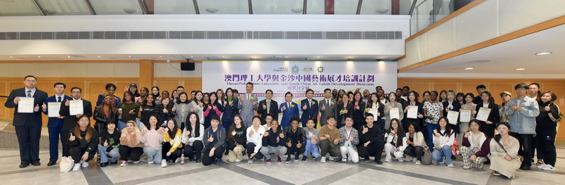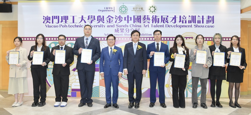 【本報消息】為配合澳門青年政策、助力澳門「1+4」經濟適度多元發展,澳門理工大學、金沙中國及澳門理工大學校友會聯合舉辦的「藝術展才培訓計劃」在理大舉行成果分享展,展示學生創作成果,反應熱烈。理大校長嚴肇基、金沙中國行政副主席王英偉、理大校友會理事長黃宇棋等出席活動並向參與計劃的學生頒發證書。