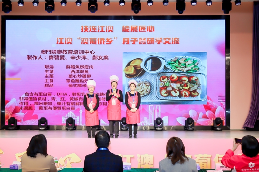 【本報消息】由江門市人力資源和社會保障局、江門市婦女聯合會、本澳婦女聯合總會合辦,廣東江門中醫藥職業學院、江門市新會技師學院、江門市婦女兒童活動中心承辦的江澳「澳葡僑鄉」月子餐研學交流,日前在江門市婦女兒童活動中心舉行。活動以「技連江澳 能展匠心」為主題,以月子餐文化為媒,推進兩地飲食文化的深入交融,深化江澳技能人才合作交流。