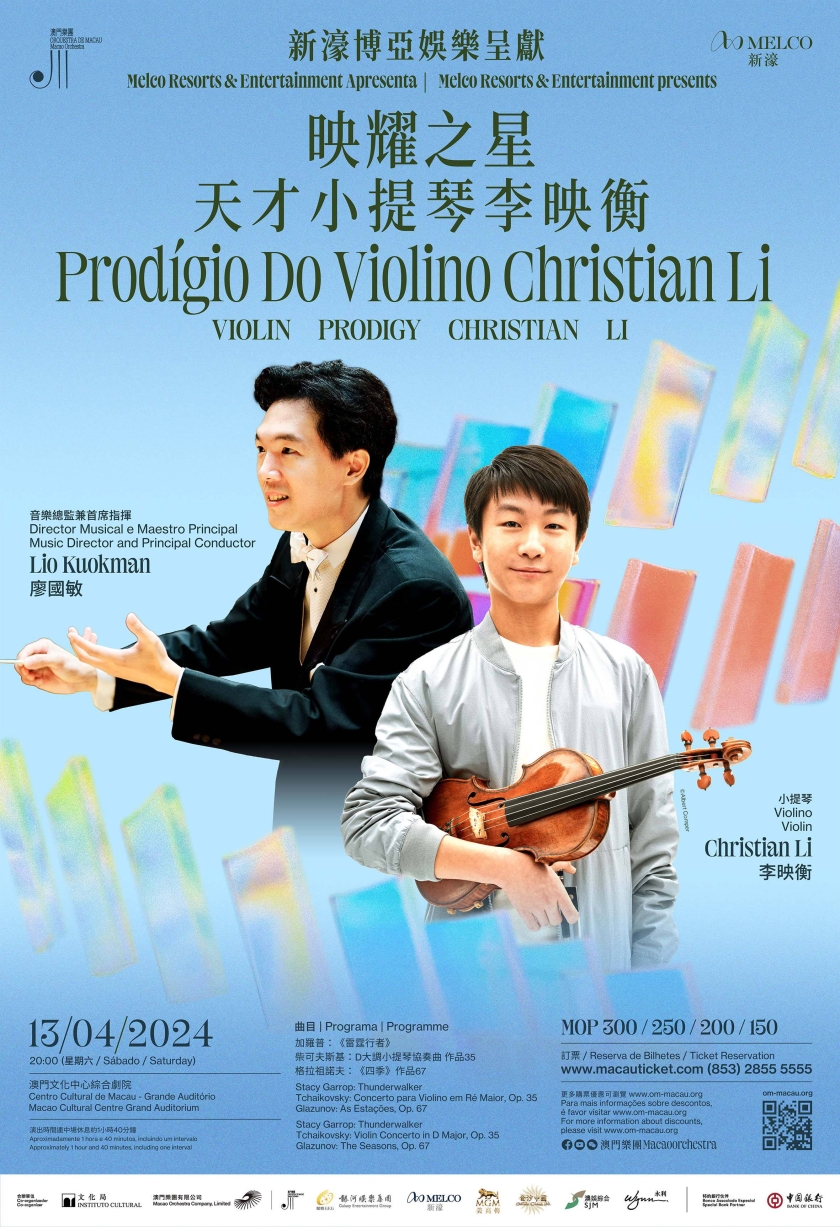 【本報消息】由文化局、澳門樂團、新濠博亞娛樂呈獻的澳門樂團《映耀之星—天才小提琴李映衡》音樂會,將於4月13日晚上八時在澳門文化中心綜合劇院上演。