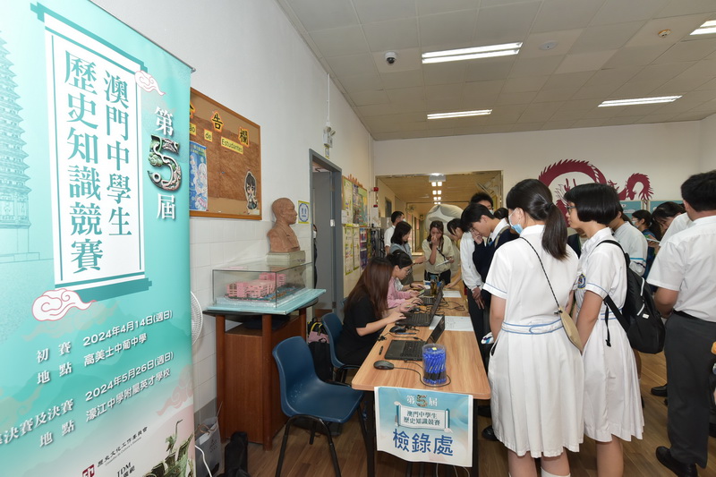 【本報消息】為提高澳門中學生對中國歷史文化的興趣和對本地歷史的了解,以及向市民大眾普及歷史文化教育,由澳門基金會及其歷史文化工作委員會、澳門歷史教育學會及澳廣視聯合主辦;河南省文物局指導;教育及青年發展局、文化局、澳門科技大學圖書館及河南省文物建築保護研究院支持的第五屆「澳門中學生歷史知識競賽」初賽已於4月14日假高美士中葡中學順利舉行。