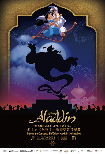 《阿拉丁》是迪士尼的經典動畫,1992年於全球上映,當中奇幻的故事情節、充滿想像力的世界令各地觀眾印象深刻,陪伴一代觀眾的成長。是次音樂會將由澳門樂團助理指揮葉政德帶領澳門樂團以及多位聲演不同主要角色的實力派歌手,包括陳章健、劉軒蓁、RJ Woessner及神秘失控人聲樂團等,上演一場匯集動畫、交響樂及演唱等聲色兼備的音樂會,讓樂迷重溫亞倫.曼肯為電影創作的多首獲獎無數的經典歌曲。