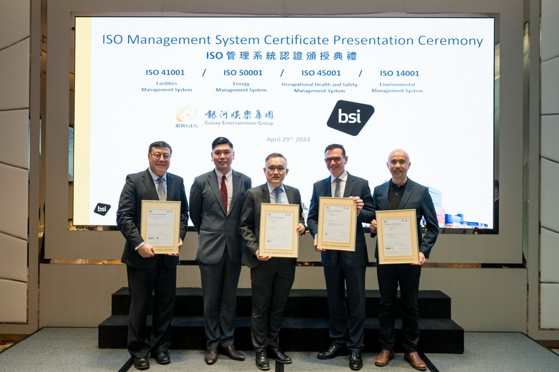 銀娛憑藉完善的設施及能源系統管理等相關工作,獲英國標準協會頒發ISO 41001設施管理體系、ISO 50001能源管理系統、ISO 14001環境管理系統及 ISO 45001國際職業健康安全管理體系多項國際標準認證;同時,澳門悅榕庄、「銀河酒店」及澳門大倉酒店亦憑藉出色的環保管理表現,分別續獲 EarthCheck金徽及銀徽認證。當中,澳門悅榕庄自2015年起連續四年獲 EarthCheck銀徽認證,並自2019年起每年榮獲金徽認證,至今已合共九年獲頒相關認證。