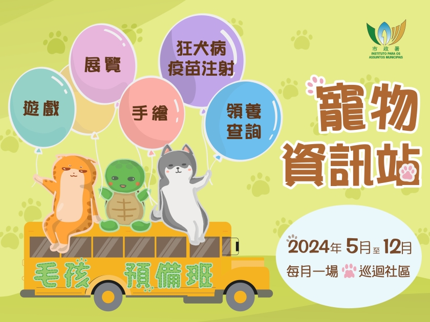 【本報消息】市政署聯同動保團體於五月至12月期間,在全澳多區舉辦「毛孩預備班─寵物資訊站」。今年除設攤位遊戲及展覽活動外,更新增領養查詢及狂犬病疫苗注射服務,便捷居民,並普及動物領養及飼主責任訊息。