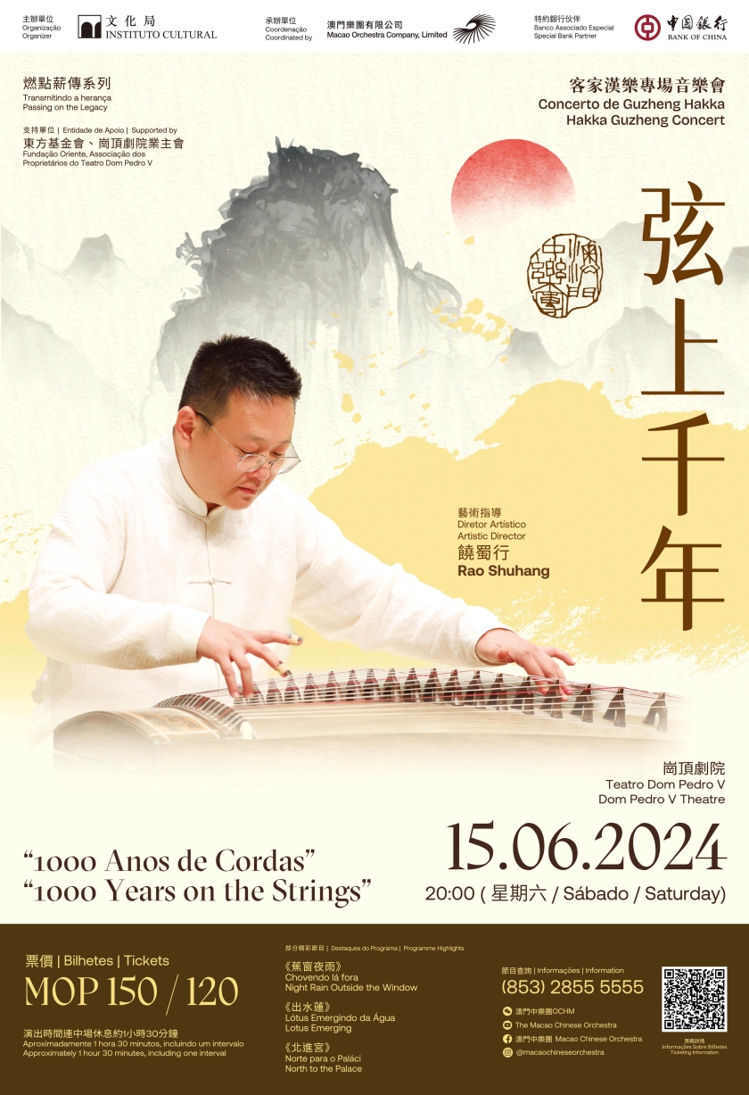 《弦上千年》客家漢樂專場音樂會,邀得古箏演奏家饒蜀行擔任藝術指導,並獨奏多首傳統客家箏曲,包括《出水蓮》、《蕉窗夜雨》和《崖山哀》等,邀請樂迷一同聆聽源遠流長的古箏之音。此外,澳門中樂團亦將聯同饒蜀行,演繹《過江龍》、《北進宮》、《西廂詞》和《翡翠登潭》等傳統名曲。