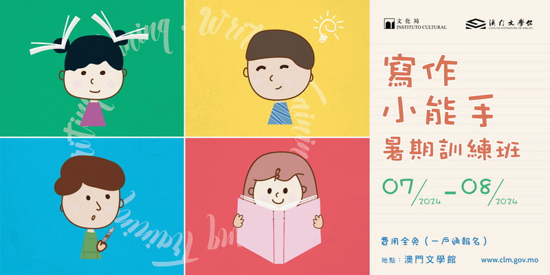 「寫作小能手暑期訓練班」分別於7月6日至8月10日期間逢星期六下午三時至五時在澳門文學館舉行,對象為四至七歲的兒童,需由一位家長陪同參與。