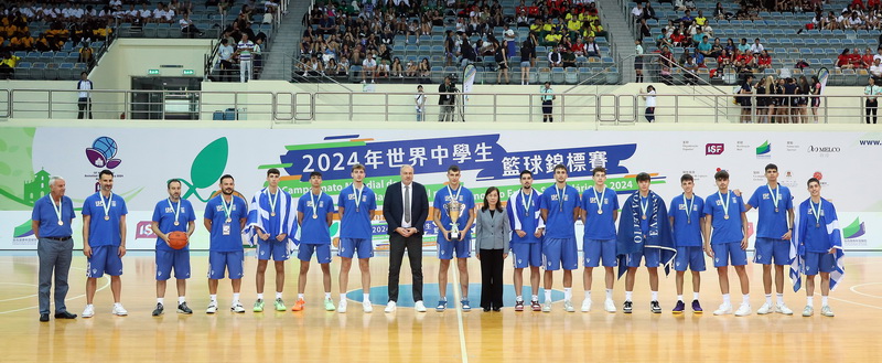世界中學生籃球錦標賽周二下午五時在塔石體育館舉行閉幕式,並向男、女子三甲隊伍頒發獎牌及獎盃,社會文化司司長歐陽瑜亦有出席並向奪得男子組冠軍的希臘隊頒發獎盃。