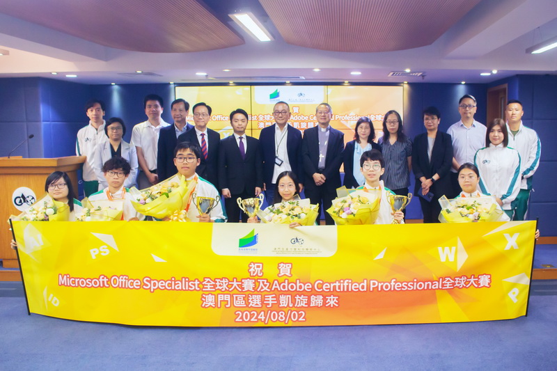 【本報消息】由教育及青年發展局、生產力暨科技轉移中心共同合作支持九名澳門學生前往美國參加Microsoft Office及Adobe軟件技能全球大賽,勇奪六項全球冠、亞軍,突破歷年澳門成績。合辦單位感到非常鼓舞,將繼續發掘有潛質的青少年,為1+4多元發展培育人才。