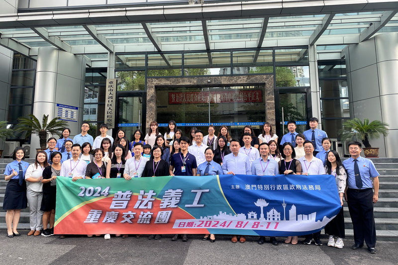 【本報消息】為加強對普法義工團成員的愛國教育,加深他們對內地法治建設的了解,法務局於8月8日至11日舉辦「2024普法義工重慶考察交流活動」,組織澳門法律交流協進會、澳門金融法律學會、澳門青年法學會、「普法動力」青年義工團、澳門婦女普法義工團、澳門社區普法義工團和工青普法義工團共35人前往重慶進行學習交流。