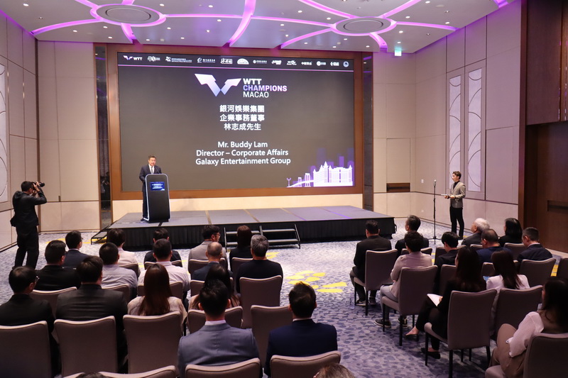 「WTT澳門冠軍賽2024由銀河娛樂集團呈獻」由政府體育局、WTT世界乒乓球職業大聯盟及銀河娛樂集團主辦、澳門乒乓總會協辦,賽事今年由塔石體育館移師至澳門東亞運動會體育館舉行,每場座位增至約4,700個。主辦單位周三下午在銀河國際會議中心舉行新聞發佈會,公佈賽事詳情及票務安排。