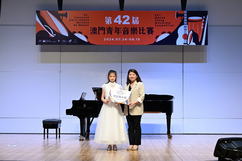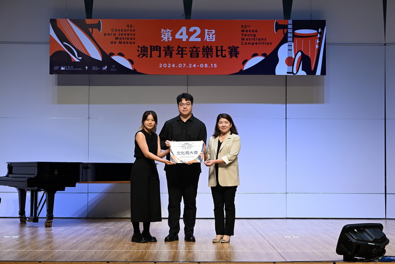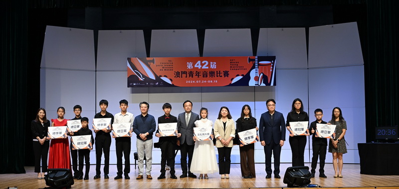 【本報消息】由文化局主辦的第42屆澳門青年音樂比賽於日前舉行特別大獎賽及頒獎儀式,文化局副局長張麗珊、演藝發展廳廳長郭妙瑜、特別大獎賽評審戴路青指揮、倪恩輝指揮、黃光佑指揮、歐陽慧剛指揮、盧厚敏指揮及簡栢堅指揮頒發中樂及西樂組別共20項特別大奬。