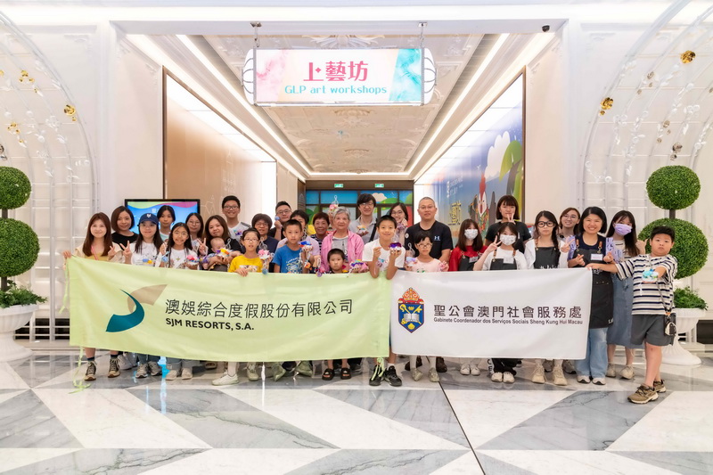 分別於8月11及16日舉行的上葡京藝術工作坊,邀請街總的23位親子及同善堂長者活動中心的20位長者參加。參加者在青少年小導師的細心指導下,發揮無限創意,製作獨一無二的保鮮花玻璃球、保鮮花小夜燈和保鮮花鑰匙扣。活動中歡笑聲不斷,氣氛樂也融融。澳娛綜合更向聖公會澳門社會服務處的五位小導師頒發感謝狀和紀念品,鼓勵他們繼續努力向自己的目標進發。