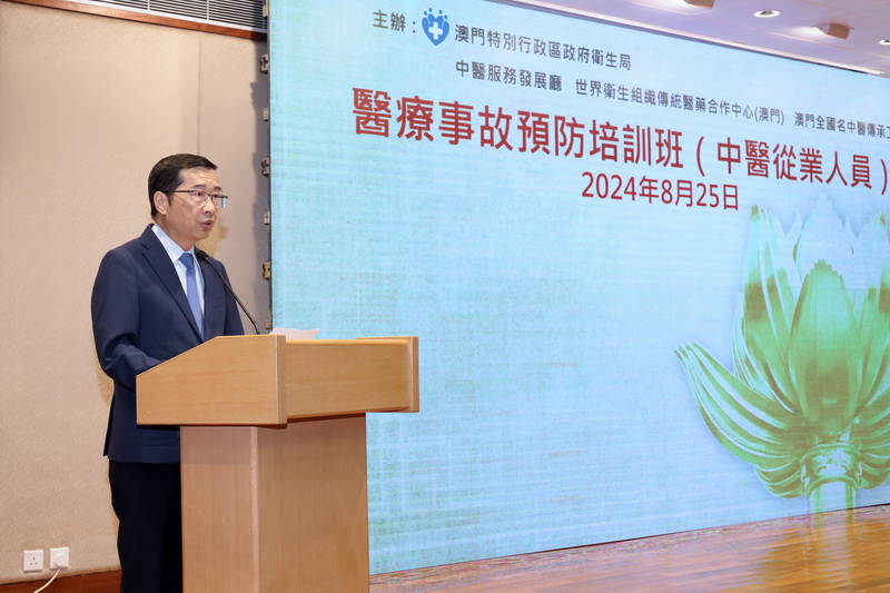 鄭成業致辭時表示,國家全力推動醫療衛生服務高質量發展, 2023年發佈了《全面提升醫療質量行動計劃(2023-2025年)》,從加強基礎醫療質量安全管理、強化關鍵環節和行為管理、完善工作機制等維度,詳述了28項具體措施和五個專項行動。為提高本澳醫療服務質量、讓醫患雙方在處理醫療爭議及事故時能明確有關規範和機制,確保公平性和公正性,並保障醫療服務安全及維護患者健康權益,本澳《醫療事故法律制度》於2017年2月26日正式生效。他強調,特區政府積極推動中醫藥發展,進一步推動中醫服務在社區的普及應用,期望通過開展多元中醫專業培訓活動以鞏固中醫從業員的基礎理論、臨床操作規範及醫療法律知識等,以全面提高中醫臨床診療能力和醫療操作的安全性,達到持續改善醫療服務質量的目標。