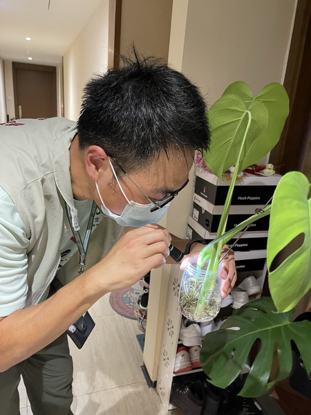 衛生局工作人員本周一在穿著制服及佩戴工作證可供居民識別的情況下,已在澳門青草街及周邊街道逐家逐戶地進行登革熱病例搜索,並設臨時抽血站為有疑似登革熱症狀人士進行抽血送檢,以便儘早發現病例;與此同時,也即場向居民宣傳防範登革熱及清除孳生源的重要性。