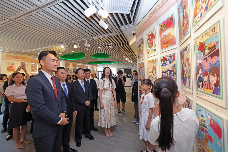 今年是中華人民共和國成立75周年及澳門特別行政區成立25周年,教青局再次與郵電局合作,發行以「雙慶」為主題的慶祝教師節紀念郵品,澳門教育事業在祖國的支持,以及特區政府和社會各界的共同努力下,取得了長足的發展。龔志明向出席紀念郵品發行儀式的高等教育及非高等教育教師團體代表致送紀念郵品,象徵着向全體教師表達誠摯的節日祝福。隨後在教育資源中心子瞻廊舉行喜迎雙慶教師節海報及漫畫作品展開幕禮,並由獲選作品學生代表為參觀者作展品導賞,現場氣氛熱鬧。