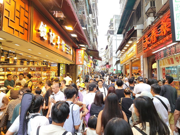 旅客消費方面,有中區手信店負責人表示,內地中秋節假期首兩日區內旅客人流明顯增多,但旅客消費不高,現時旅客更多著重旅遊體驗和追求性價比,在旅遊區觀光以拍照打咭和品嚐美食為主,手信購買意欲普通,試食的人多,即使購買也只會少量自用為主,形容是旺丁不旺財,生意難做。