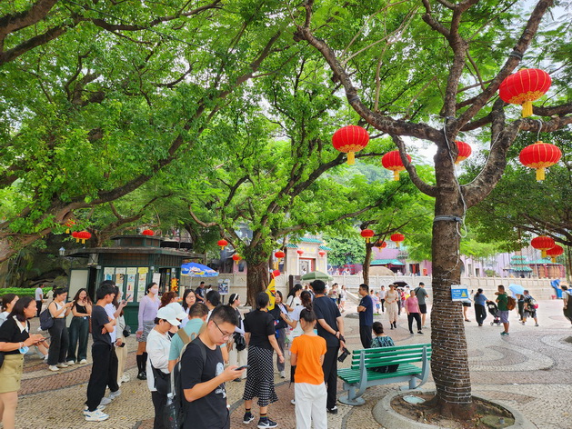 有來自廣東的旅客則表示,過去已來澳多次,今次趁國慶節旅遊旺季前到澳門旅遊以避開旅遊高峰期,早上除了會到遊澳必到的大三巴牌坊和議事亭前地外,並打算到媽閣觀看展覽,不過中秋節天氣仍然較為炎熱,下午可能會轉到路氹的渡假村購物。周三下午中區所見,旅遊區除了有不少內地自由行旅客外,也有多個韓國旅行團在大三巴至議事亭前地一帶觀光。