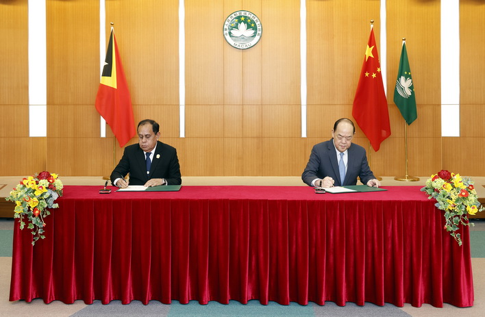 行政長官在簽署儀式上致辭時表示,中國和東帝汶建交22年以來,兩國關係穩步發展,務實合作成果豐碩,成為國家間相互尊重、和平共處、共同發展的典範。並指澳門與東帝汶的友誼源遠流長,在經貿、教育、文化、人員等方面交流頻繁。簽署備忘錄可進一步鞏固和加強彼此間的友好關係,雙方以此為契機,繼續拓展兩地在經貿、旅遊、文化、民間交往等領域的合作。