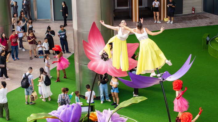 由即日起「濠裳花舞」將新濠天地南入口蛻變成一個琳瑯滿目的大花園,巨大的花卉雕塑和精美的裝置在建築物之間綻放。表演由來自世界各地包括加拿大、法國、土耳其和澳大利亞的藝術家們傾力演出,曾經欣賞過巴黎2024年奧運會開幕式的觀眾定會感到似曾相識,並對花瓣舞者展現的出色高空舞蹈和超凡技巧感到驚嘆,於高聳的花卉上搖擺及翩翩起舞,盡顯優雅的姿態及迷人舞蹈。
