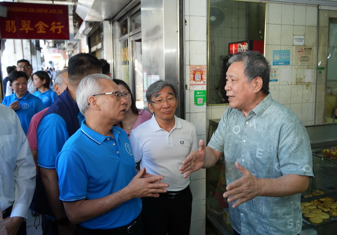 岑浩輝一行先後前往司打口休憩區、河邊新街、下環頤康中心、下環福德祠、媽閣前地一帶,分別與商舖、街坊和長者交流。聽取有關都市更新、營商環境、活化片區、增加休憩空間、環境衛生、媽閣交通樞紐的意見和建議,他同時也關注南雨水泵站工程進度、公共交通、廟宇文化等問題。