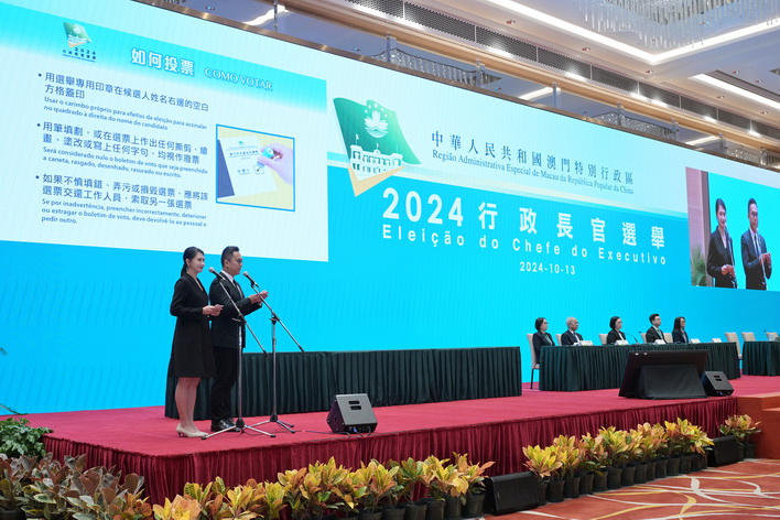 行政長官選舉的投票站設於中國與葡語國家商貿合作服務平台綜合體會議廳,整個選舉程序於上午10時開始,歷時約1小時35分。398名選舉委員會委員出席並參與投票,經過工作人員點票、唱票、選舉管理委員會成員和候選人代理人先後查閱選票後,點票結果為有效票394張、空白票4張。