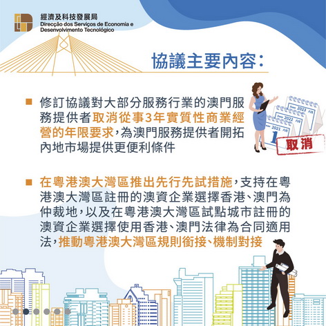 此外,《修訂協議二》進一步提升對澳門專業服務的開放水平,允許建築工程、會計、醫療、教育等專業人士可以更優惠條件進入內地市場,讓澳門服務提供者能夠發揮優勢,為國家發展貢獻力量。