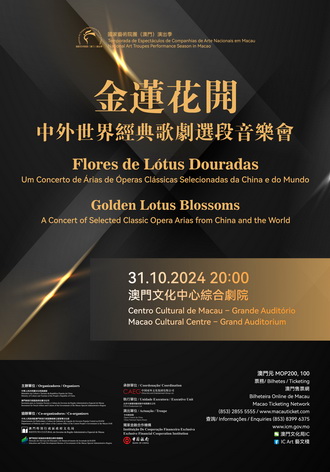 新編梨園戲《董生與李氏》將於10月22及23日晚上7時45分在文化中心小劇院上演,票價為150澳門元;中央歌劇院《金蓮花開》系列音樂會則將於10月30及31日晚上八時在文化中心綜合劇院上演,票價為200及100元。