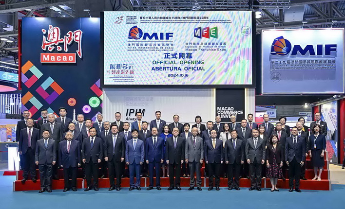 【本報消息】「第29屆澳門國際貿易投資展覽會」(第29屆MIF)聯動「澳門國際品牌連鎖加盟展2024」(2024MFE)周三正式拉開帷幕,並由行政長官賀一誠、中聯辦主任鄭新聰、外交部駐澳特派員劉顯法等主持開幕儀式。