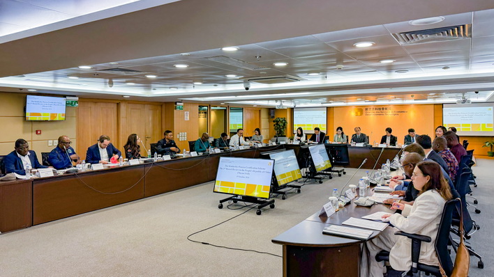 國家海關總署派代表出席及指導。經濟及科技發展局與澳門海關分別作為澳門特區《金伯利進程證書制度》的指定機關及監察機關,就本澳執行相關制度從法律及制度框架、進出口管制、清關流程等方面進行介紹及演示,讓核查組人員了解澳門如何在符合《金伯利進程證書制度》要求及本澳法律制度下進行毛坯鑽石的對外貿易及經營活動,並解答核查組人員的提問。澳門.中國鑽石與寶石交易所代表亦就行業自律作出介紹。