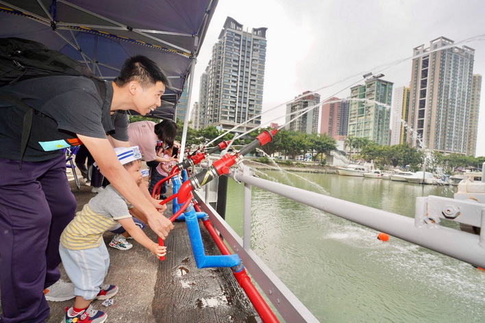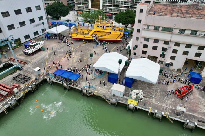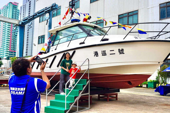 「揚帆啟航海事節2024」的重點活動之一「海事同樂日」周日在政府船塢舉辦,活動現場設有多個以海事安全為主題的攤位遊戲,亦有模擬射水炮,讓小朋友親身體驗海上救援工作,並展出救援船、快艇、模型船、救生筏、航標設施、水文探測設備等,市民踴躍登上架放在陸地上的大型海事救援船參觀,了解救援船結構、救援設備及駕駛室設施,而模擬射水炮亦深受小朋友歡迎,積極參與體驗海上救援工作,活動吸引了近6,000人次入場參與。