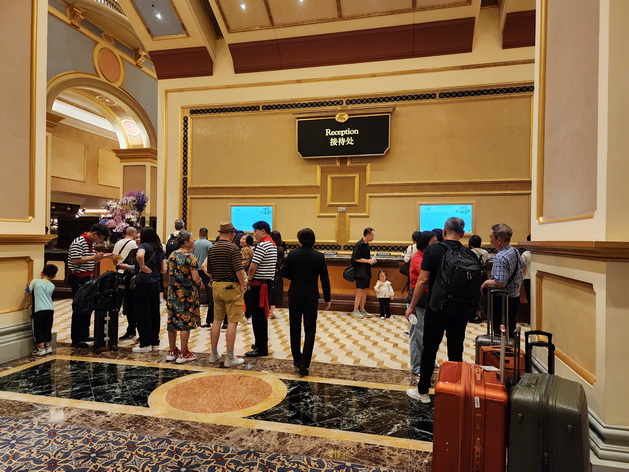 【本報消息】統計暨普查局資料顯示,今年首三季隨團入境旅客按年上升一倍至149.7萬人次。酒店業場所的客房平均入住率同比上升4.8個百分點至85.4%,住客增加11.2%至1,088.9萬人次,住客平均留宿時間維持在1.7晚。