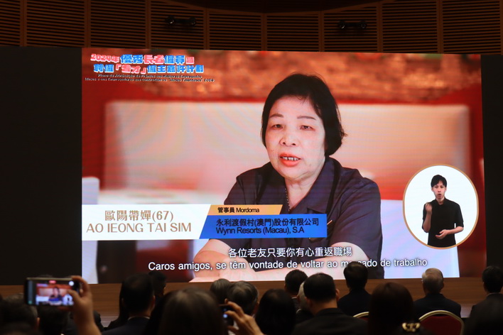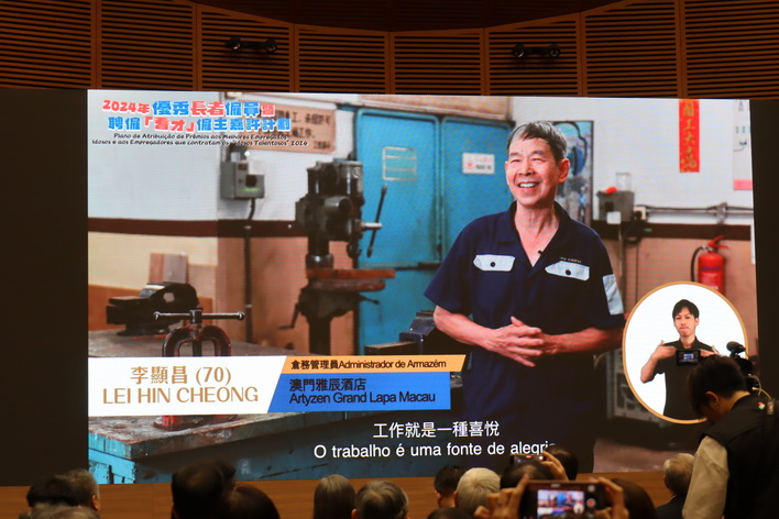 活動上主辦單位除公開嘉許獲獎僱員及僱主外,亦播放了分享短片,片中表達了10名獲嘉許的長者僱員及其僱主的心聲,當局認為透過短片體現到長者僱員在工作上獲得僱主及同事的支持下,順利融入工作當中,同時他們堅持不懈的工作精神以及熱誠的工作態度,對企業發展帶來重要價值,亦帶來更多的動力。他們的分享讓在場人士感到鼓舞和激勵,期望透過嘉許活動有更多人知道和認同長者的工作,讓他們有更多繼續就業的機會。有關獲嘉許名單可瀏覽網頁www.dsal.gov.mo/zh_tw/standard/news_detail/article/elder2024.html。