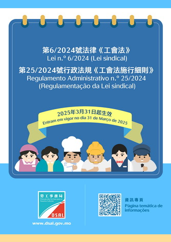 【本報消息】第6/2024號法律《工會法》及其補充性行政法規將於2025年3月31日正式生效,為了讓市民了解法例的內容,勞工事務局將於11月16日及29日舉辦兩場講解會,以簡明方式向參加者講解包括工會及工會聯合會的組成及登記事宜、權利、義務及保障、機關及機關據位人,以及現存僱員社團的處理等內容。局方期望透過講解會,讓市民大眾了解相關法例的規定及須注意的事項。