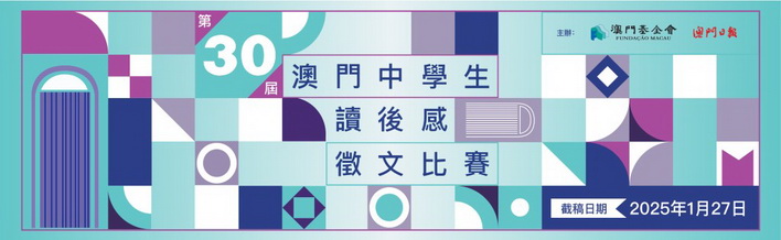 【本報消息】由澳門基金會、澳門日報合辦的第30屆「澳門中學生讀後感徵文比賽」,即日起接受投稿,截止日期為2025年1月27日。活動旨在推動澳門學生的閱讀風氣,提高中文寫作水平,歡迎本澳中學生參加。