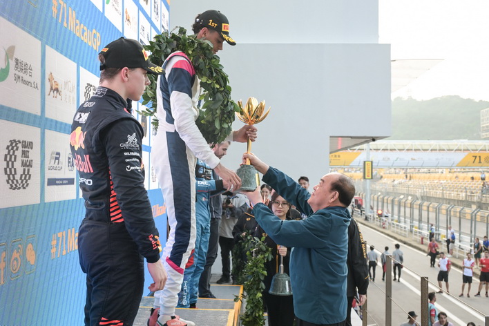【本報消息】一連四日的第71屆澳門格蘭披治大賽車周日落下帷幕。今年賽事接連受降雨影響,多場賽事需要延期甚至是取消,其中壓軸上演的FR世界盃就在先後出示紅旗和黃旗下完賽,最終由美國車手烏高卓古奪冠;延至同日舉行的格電正賽則因降雨而取消,按排位賽成績計算由英國車手陶德奪冠。