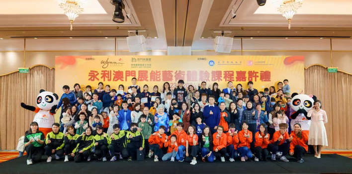 【本報消息】永利澳門展能藝術體驗課程嘉許禮於日前在永利皇宮隆重舉行。此次嘉許禮由永利關愛基金會贊助,與澳門扶康會欣悅展能藝術工作室合辦,澳門科技大學人文藝術學院支持,旨在表彰參與課程的兒童、家長及義工的傑出表現與貢獻。