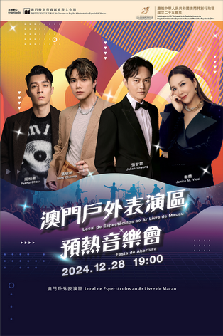 隨著表演區投入試營運,「澳門戶外表演區預熱音樂會」將於12月28日晚上七時舉行,演藝紅星張敬軒、張智霖、周柏豪、衛蘭等多位知名歌手及藝人將親臨現場獻唱,音樂會預計接待15,000名觀眾,票價分別為480、780及1,080澳門元;門票除以市場價格發售,特設50元「澳門居民專享門票」,居民專享門票將採取先登記、後抽籤、再購買的形式公開發售,具體演出及售票詳情將於稍後公佈。