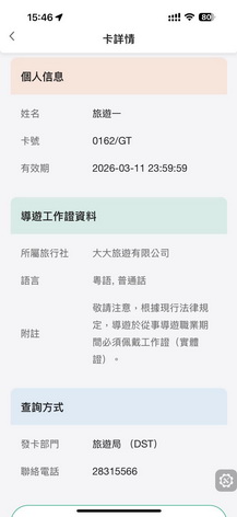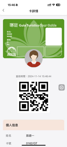 【本報消息】旅遊局由12月10日起在一戶通專業類電子卡包新增導遊工作證電子卡證,進一步便利業界,實現導遊工作證申請及辦理相關服務全電子化,配合推動電子政務發展。
