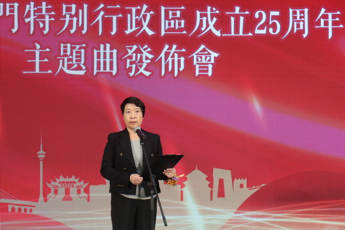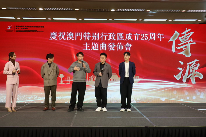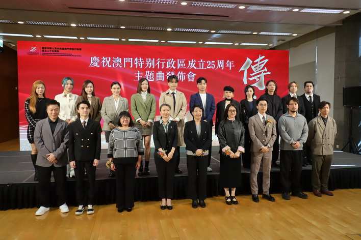文化局周三早上在澳門文化中心舉行慶祝中華人民共和國澳門特別行政區成立25周年主題曲《傳源》發佈會,並由梁惠敏、中聯辦宣傳文化部副部長白冰、新聞局局長陳露及旅遊局旅遊推廣廳廳長霍慧蘭共同啟動主題曲。