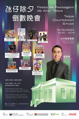 另外,「2024氹仔除夕倒數晚會」將於12月31日晚上在龍環葡韻舉行,並繼續以多元文化共融為晚會主軸,屆時晚會舞台演出於晚上八時半開始,本地歌手及樂隊包括林靜翬、Concrete/Lotus、Peony & Lon將輪番獻唱帶動現場氣氛;此外,將為觀眾帶來一系列文化特色演出,包括Victor Kumar帶領的寶萊塢夢想舞蹈團、Associação Bisdak de Macau的菲律賓傳統歌舞、Jason Fong光影雜耍魔術表演、一眾本地青年上演的同聲歌祖國主題匯演,以及居澳之印尼、緬甸、越南藝團的傳統歌舞。晚會更邀請得香港歌手葉振棠作為壓軸演出嘉賓,送上多首膾炙人口的歌曲。